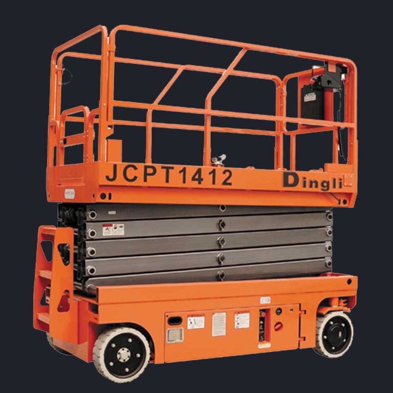 The Dingli DL1412 electric scissor lift is perfect for access in narrow and confined spaces and with non-marking tyres is ideal for indoor use in warehouses and for the interior decoration of large buildings.