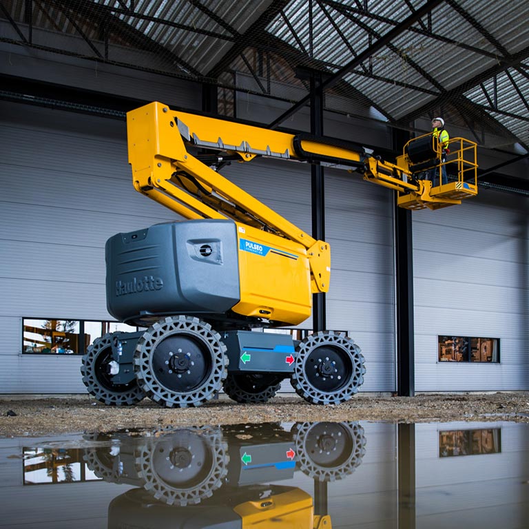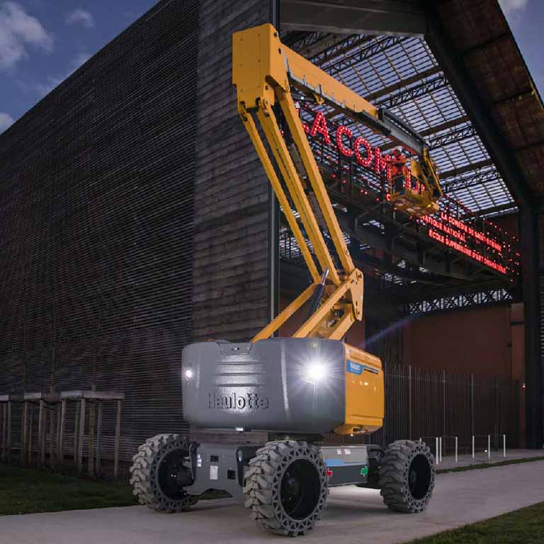 The Haulotte HA20 LE PRO electric rough terrain articulated Boom is a cleaner more eco-friendly alternative to standard diesel cherry pickers. It's all electric architecture makes it suitable for work in low emission zones or areas where noise pollution would cause a problem. With Ultra-fast elevation, 360° continuous turret rotation, low tailswing and simultaneous movements working together to enhance productivity. Its high capacity batteries ensure a full days work with the onboard range extender increasing the working cycle.