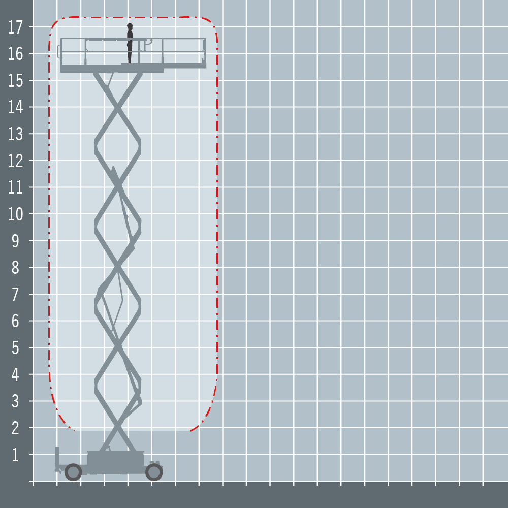 The JLG Liftlux 153-12 electric scissor lift combines a narrow frame with front wheel drive and 'Steer Plus' large diameter wheels that provide superb mobility and performance.