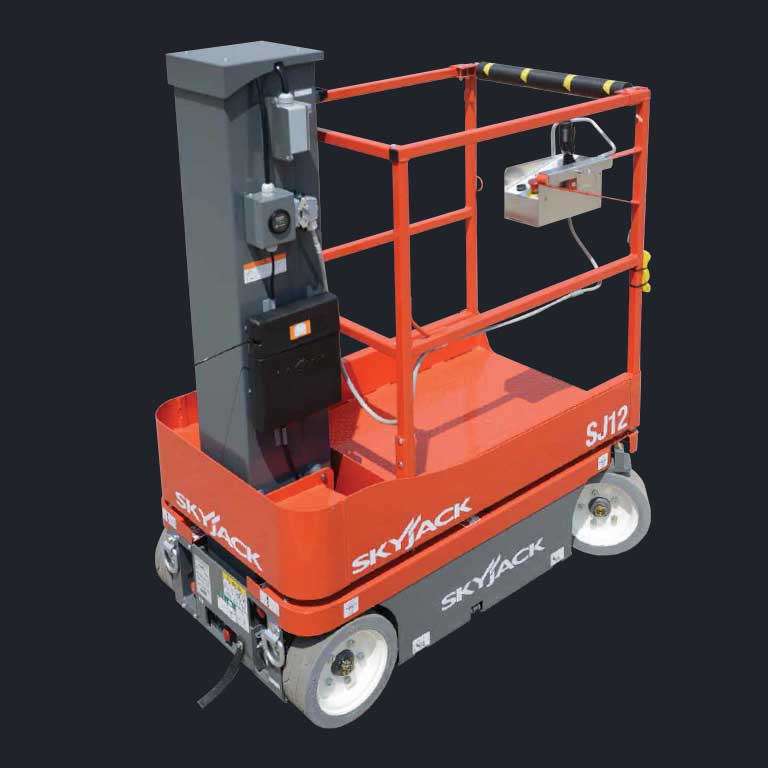 The Skyjack SJ16 Vertical Mast Lift offers an easy to service, low maintenance design in a compact and versatile package. These are zero emission, compact machines with low floor loading which means they can be used in more applications, including on finished and ornamental floors.